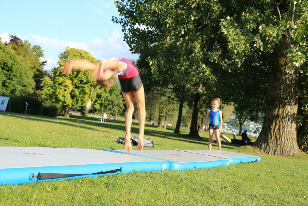Die AirTrack Matte ist nicht nur ein sicheres Turngerät sondern lässt sich auch sonst sehr vielseitig einsetzen. Z.B. als Badeplattform oder als Schlafmatte