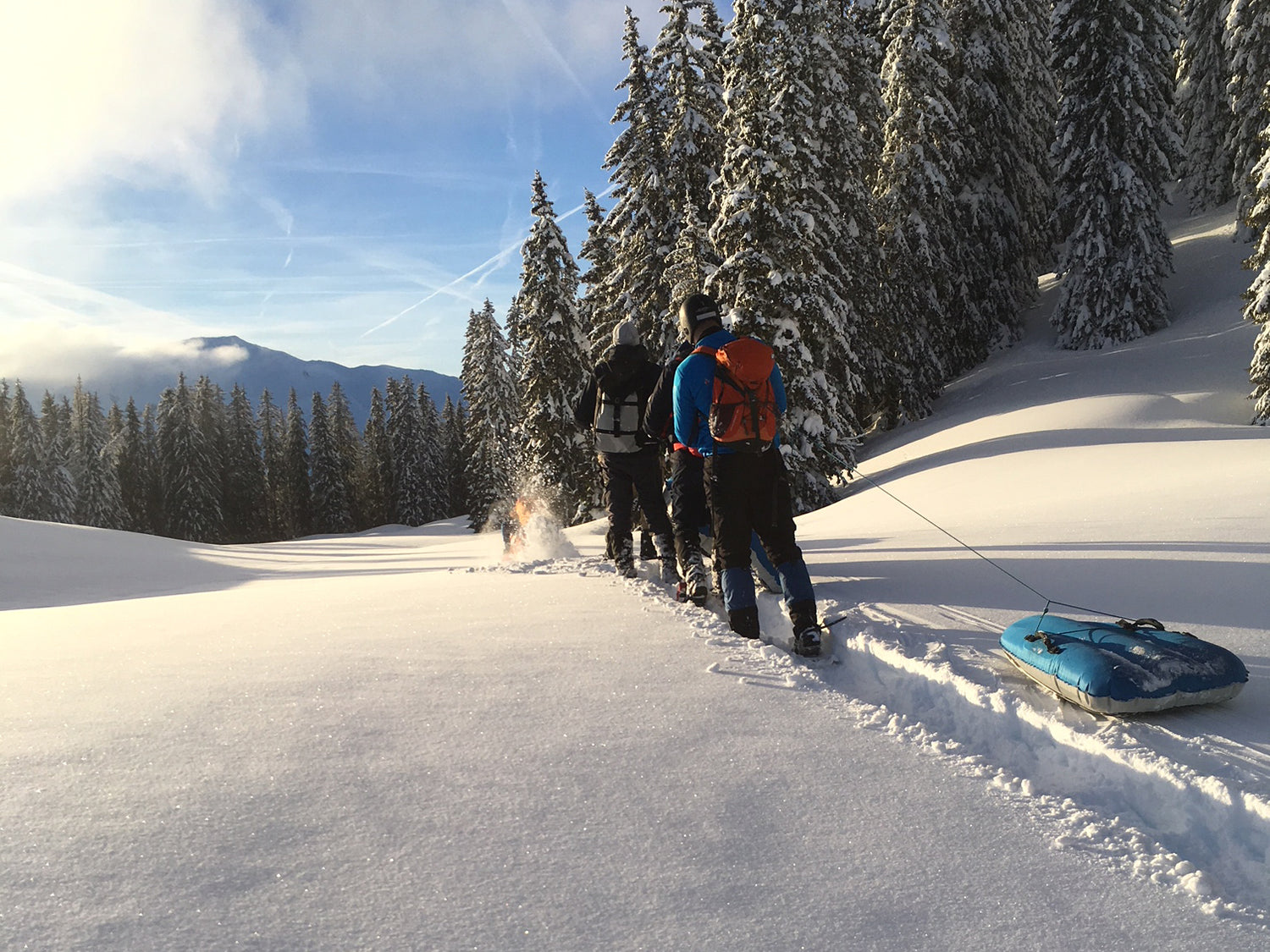 Vielseitigkeit, die begeistert – Ob auf der Piste oder abseits im Pulverschnee, ein solch aufblasbarer Schlitten bietet grenzenlose Möglichkeiten. Kombiniere deine Schneeschuhtour mit einer unvergesslichen Abfahrt! Dank des leichten und kompakten Designs ist das Airboard der perfekte Begleiter – trag es bequem hoch und gleite nach der Tour stilvoll ins Tal.