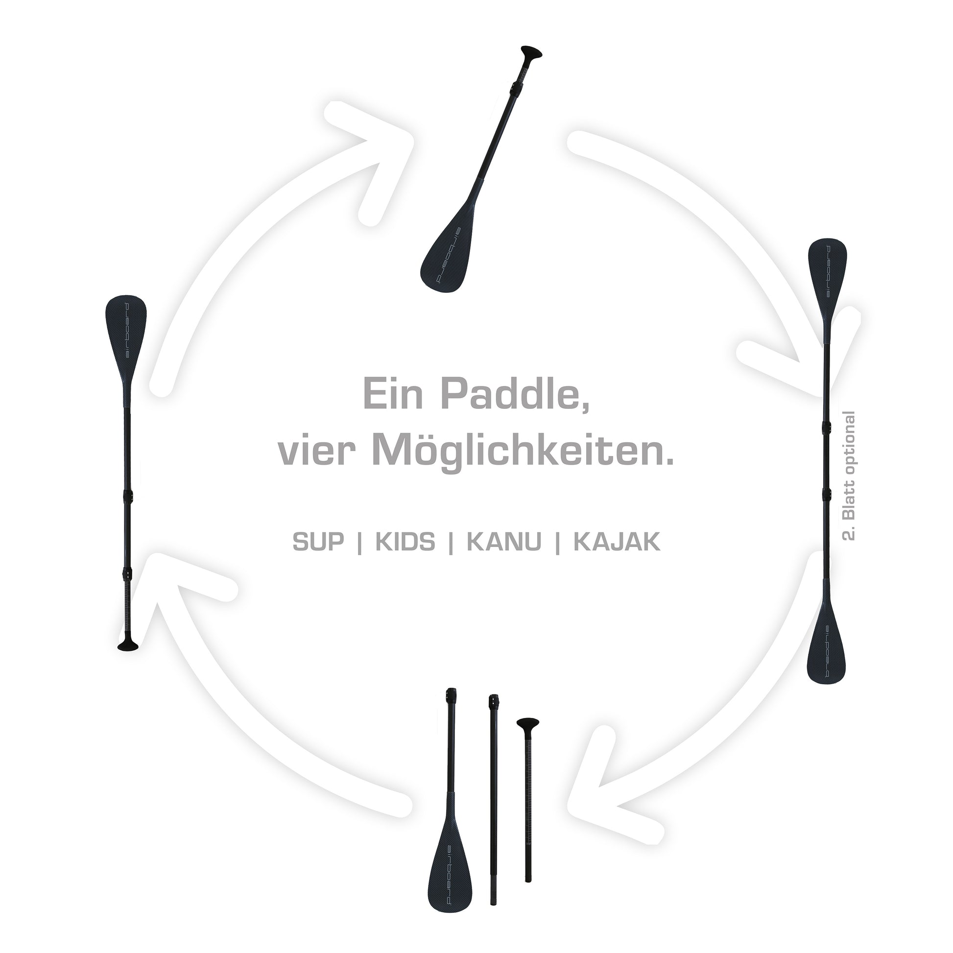 Unser 3-teiliges Fiberglas-Paddle ist so konzipiert dass es fast jedem Paddler gerecht wird und vielseitig eigesetzt werden kann. Es passt, in drei Teile zerlegt nicht nur perfekt in die Tasche, sondern es passt sich auch den Bedürfnissen an. So lässt es sich z.B. auch ohne Mittelteil als Kinder-Paddle verwenden oder findet seinen Einsatz auch beim sitzend oder kniend Paddeln (z.B. bei starkem Gegenwind). Mit einem optional erhältlichen Kajak-Blade lässt sich das Paddle zudem zu einem Kajak-Paddle erweitern.