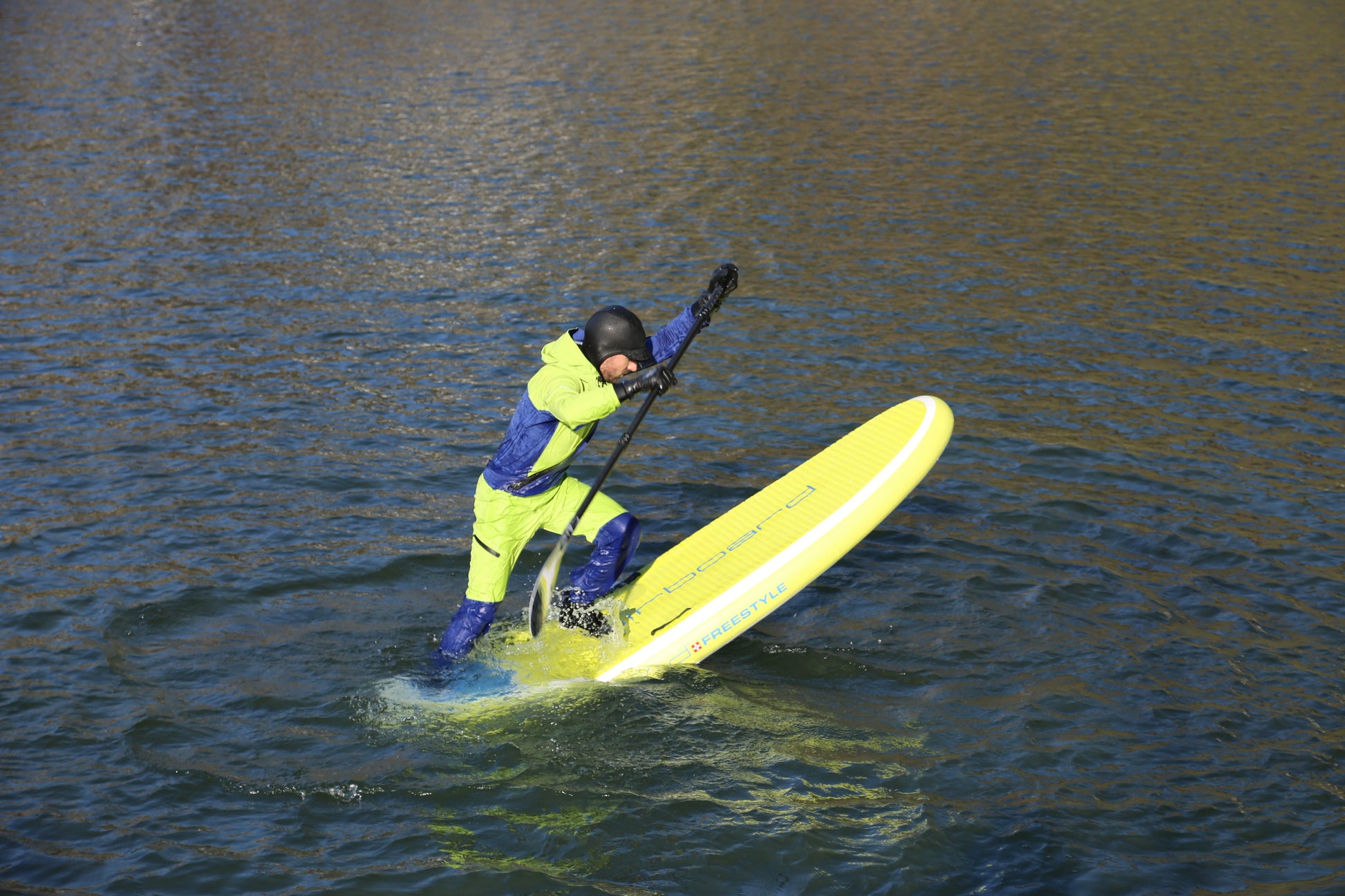 - Das SUP kann auf stillen oder bewegten Gewässern benutzt werden. Lokale Bestimmungen (Uferzone, Sicherheitsbestimmungen) sind unbedingt zu befolgen.